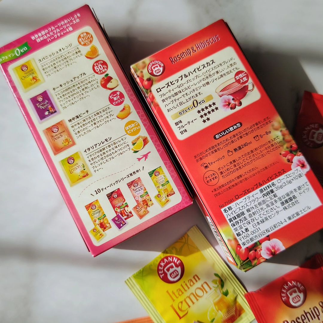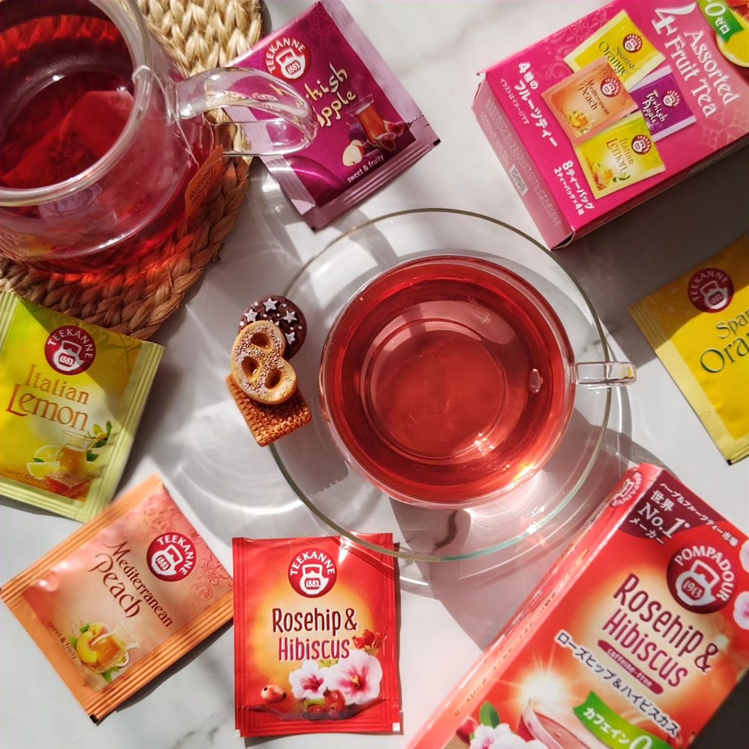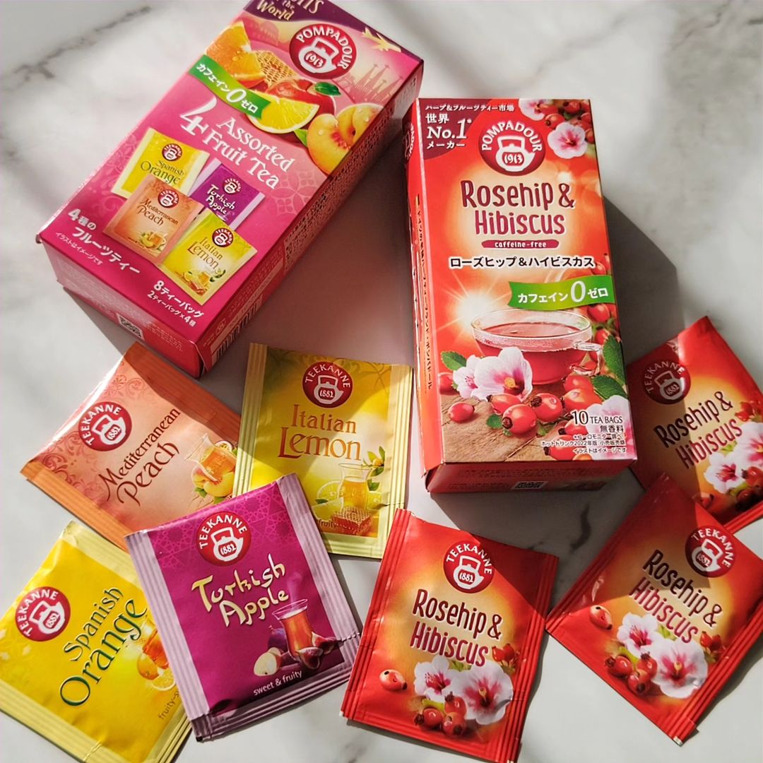 ドイツの老舗ハーブティーブランド『ポンパドール』シリーズの『ローズヒップ&ハイビスカス』と『フルーツ オブ ザ ワールド』4アソートフルーツティーを飲んでみました❣️