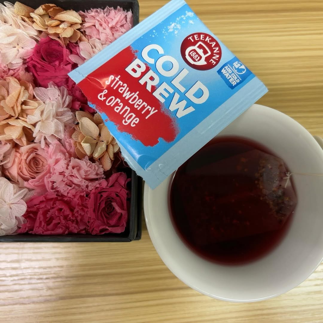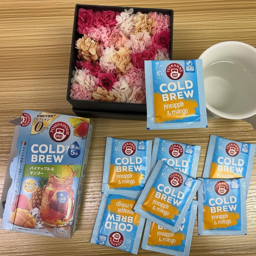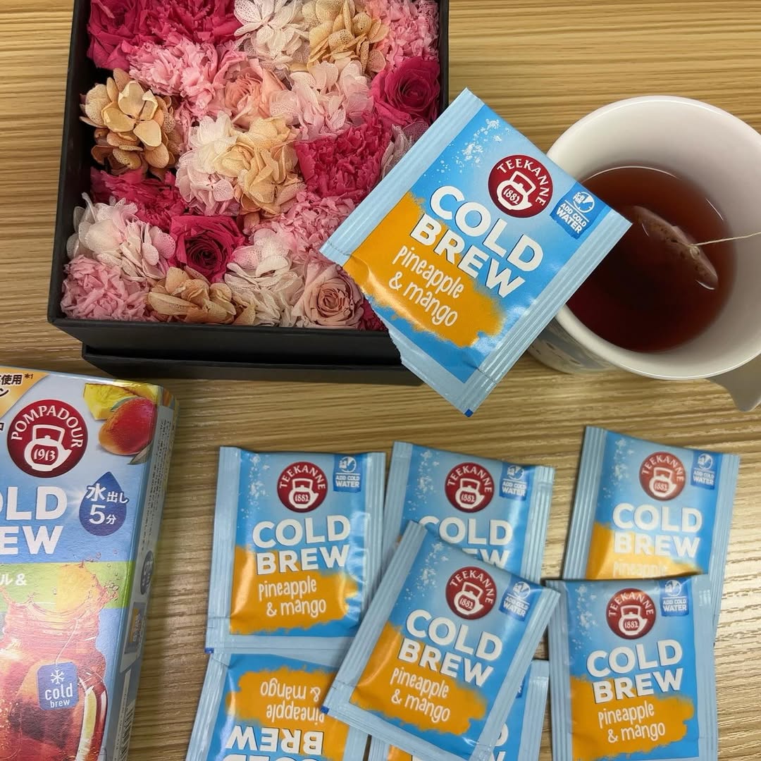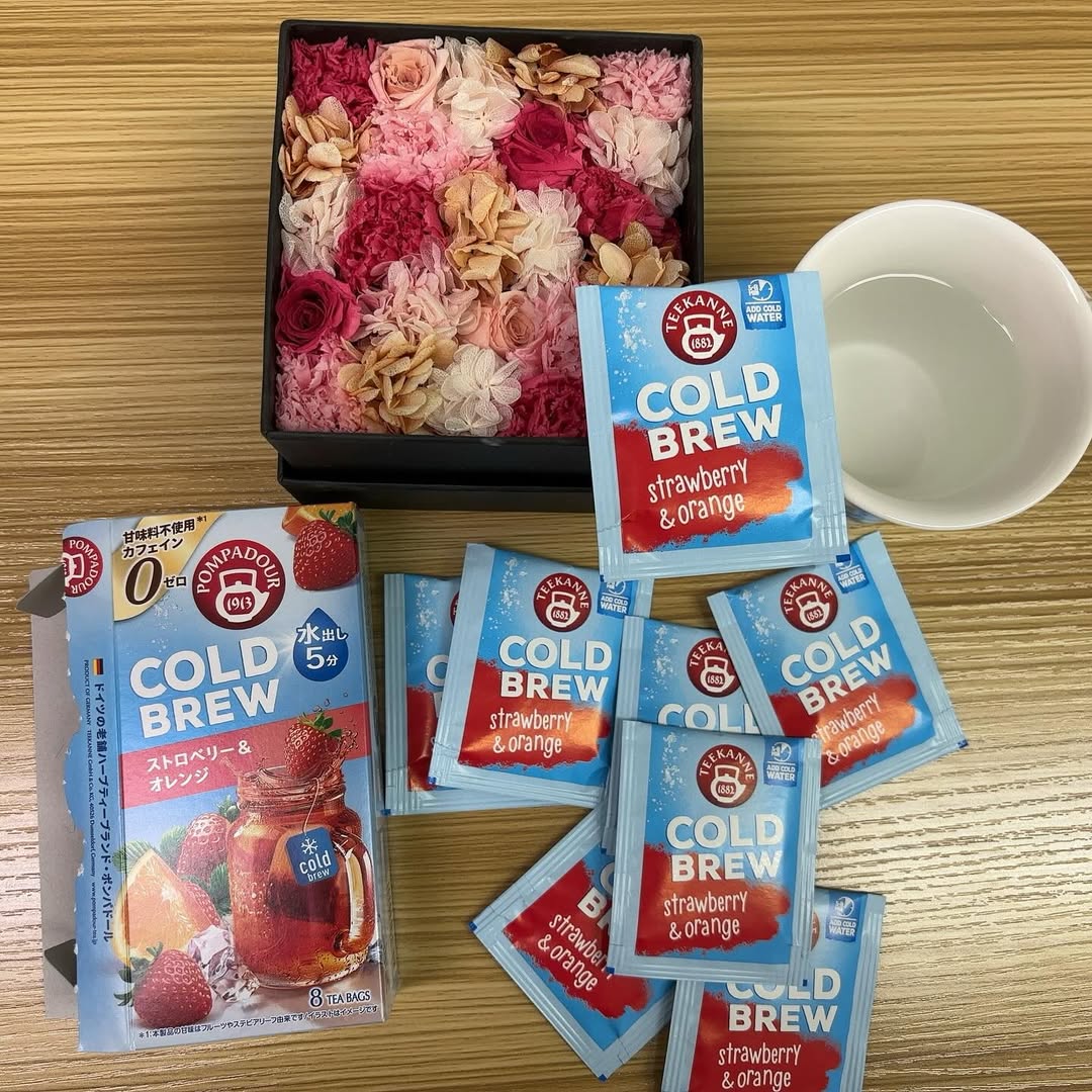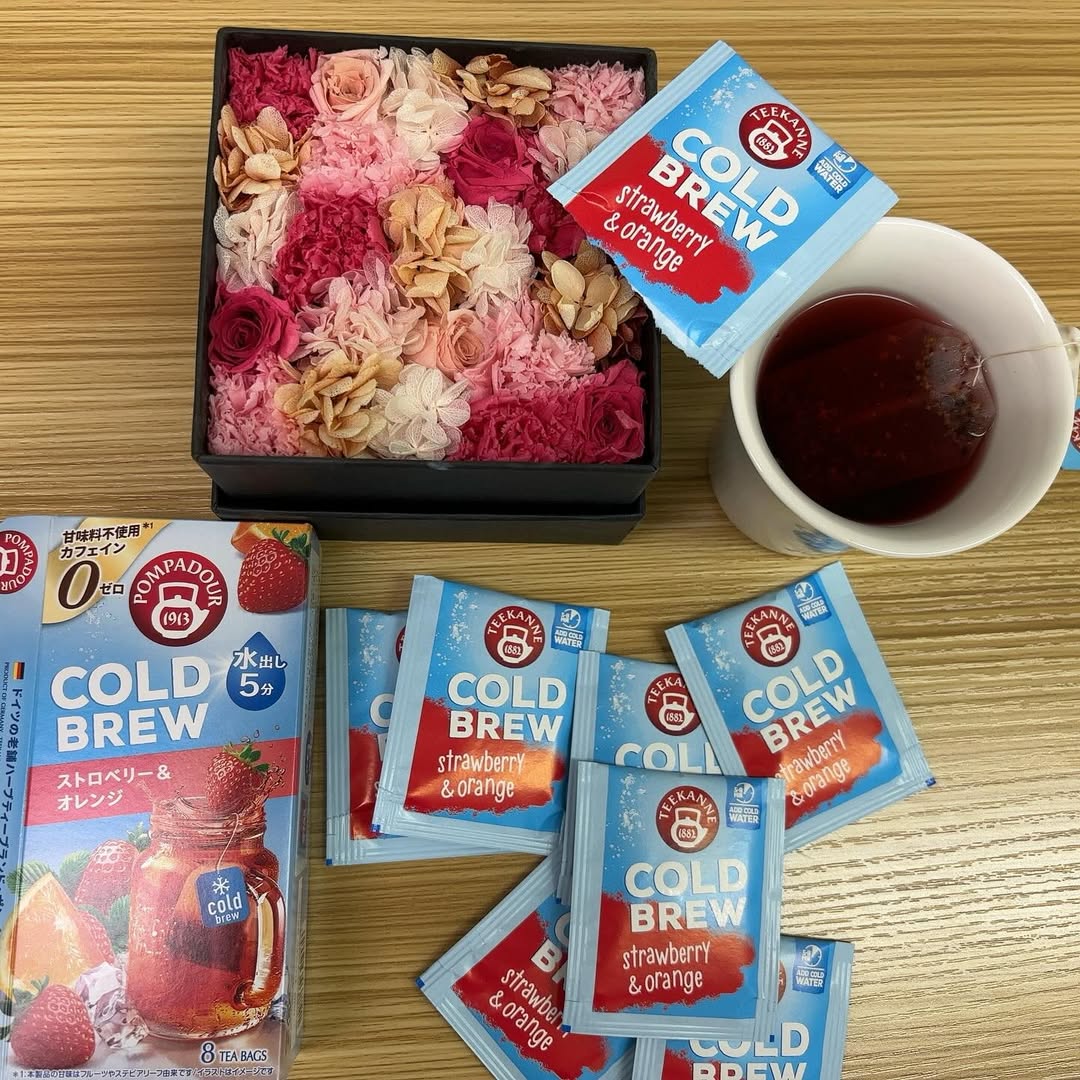 ■ストロベリーとオレンジがほんのり甘酸っぱい味わい。 ■ポンパドール「コールドブリュー」は、ポンパドールの水出しハーブティーシリーズ。1ティーバッグを250mlの水に入れて、常温5分でお召し上がりいただけます。カフェインゼロでフルーティーな味わいのため、お子さまとも一緒に楽しめます。