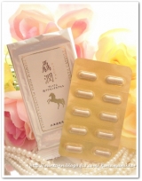 プラセンタ末(馬)・ゼラチン・着色料(二酸化チタン,カラメル色素)
