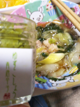 かつおと昆布の旨味を効かせた、香ばしい醤油仕立てのスープに