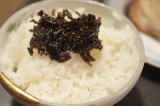 コリコリと歯応えのよいきくらげを紫蘇とともに薫り高く炊き上げました。