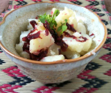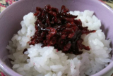 コリコリとした食感のきくらげにおかか、カリカリ梅をきざんで仕上げました。