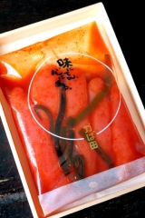 大正10年に漬物店として創業されたかば田さんの代表作昆布漬辛子めんたい『雷』をいただき、試食しました箸 星昆布漬辛子めんたい『雷』化粧箱星 177g 素材へのこだわりと漬ける技の結晶 かば田さんの代表作、昆布漬辛子めんたい『雷』… 2015/06/10