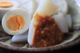 材料(4人分) 大根 1/2本 角こんにゃく 400g 卵 4個 水 適量 昆布 10cm 味噌 大さじ3 酒みりんきび砂糖 各大さじ1 唐辛子みそ 小さじ1 にんにく 2片 水50cc 作り方 ①大根と角こんにゃくは食べやすい大きさに切ります 角こんにゃく… 2016/07/29