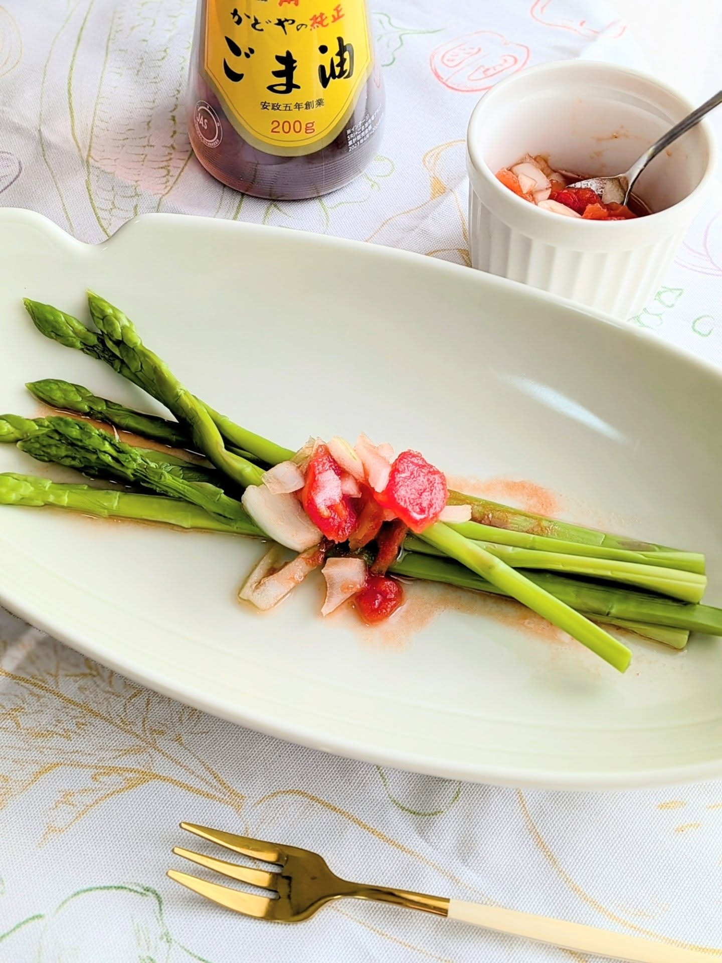アスパラと洋風によせたソースに意外な香ばしさが加わって、朝ごはんにピッタリでした🥺❤️