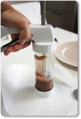 生地の配合を決めたら、後はクッキープレスのレバーを引くだけ。