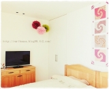 我が家の寝室は、6畳弱の小さなスペース そこにベッドや鏡台、本棚を置いてます 味気なかった寝室に、いただいたコチラのぽんぽんを飾ることに♪♪ 寝室なので、シックなスワンキーカラーに 子供と一緒に、簡単に作れるし、軽くて押しピンで飾れるので、 ちょっとした部屋の模様替えに、ぴったり♪♪ 快適ホ… 2013/07/13