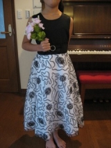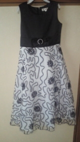 商品名:リボン飾りと刺繍が繊細なモノトーンエレガントオーガンジードレス