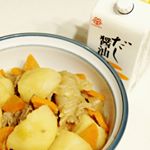 鎌田醤油のだし醤油を使ってみました♪ 直接かけても、調味料としても、これ1本で完成! 今回はこちらのだし醤油を使って肉じゃがを作ってみました。 料理が苦手で普段からレシピを丸暗記して同じ分量で作っている私。 だし醤油ってことは、だしと醤油両方を置き換えればいいのか…?💦 よくわからないままだしはこちらの煮物の希釈倍率を参考に8倍で用意し、醤油も同じ分量で置き換えてみました。 すると、だしの旨味がしっかり感じられるしまろやかに仕上がって美味しい❗️ 少し前にはうどんとだし巻き卵に使いましたが、そちらも家族みんなに好評でした。 次はおでんに使ってみようと思っています😊 #鎌田醤油 #だし醤油 #monipla #鎌田醤油のファンサイト参加中 2018/02/04