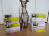 フォトコンティッシュはかわいいワンちゃんの写真がプリントされた水溶性の150Wティッシュ。ヴァージンパルプ100%だからふんわり仕上げ。普通にお部屋で使えてトイレにも流せます。箱はスリムサイズだからペットのお散歩カバンにもスッポリ入ります。
