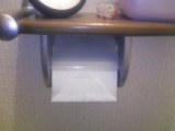 最近、保健室の子どもたちとハマってやっている トイレットペーパーおりがみ ホテルのトイレのトイレットペーパーって 紙がとりやすいように三角折りしてありませんか それが三角折りじゃなくて、 動物だったり、モノだったり、マークだったり、 いろんな形に折れる本です 女の子… 2011/03/09