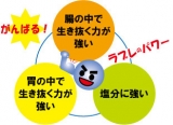 | 【ラブレのパワーの秘密】 1.生きた乳酸菌ラブレ20億個以上! カネカのラブレは、1日分2粒あたり生きた乳酸菌ラブレ20億個以上を主成分としています。 2.生きぬく力が強い乳酸菌だから届く! 京都の伝統的な漬物である「すぐき漬け」から発見された、植物由来の乳酸菌「ラブレ」は、胃の中だけでなく腸の中でも生き抜くことができ、塩分にも強い乳酸菌です。 2.ラブレ菌をサポートする2種の成分! 「生きた乳酸菌ラブレ」に、「オリゴ糖」「難消化デキストリン」をプラス。 2つの成分がラブレ菌の働きをサポートします! ラブレですっきり爽快な毎日を 実感してください。 商品の説明はこちらです! |