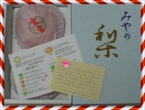 先日、大きな大きな箱が届きました❤ 開けてみると、びっくりするよな大きな梨が2つ\(◎o◎)/! さあ!切ってみるよって気合いを入れてナイフ入刀 綺麗な綺麗な白色でジューシーな切り口でした❤ 食べてみると、すごく甘いの❤ 1切れだけでもお腹がいっぱいになっちゃった… 2009/12/15