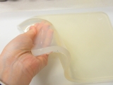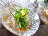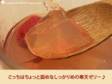 ところてんのように天つきでついて食べるときは、最高級粉寒天4gに水500cc、みつ豆のようにカットして食べるときは、最高級粉寒天4gに水700ccが適当です。