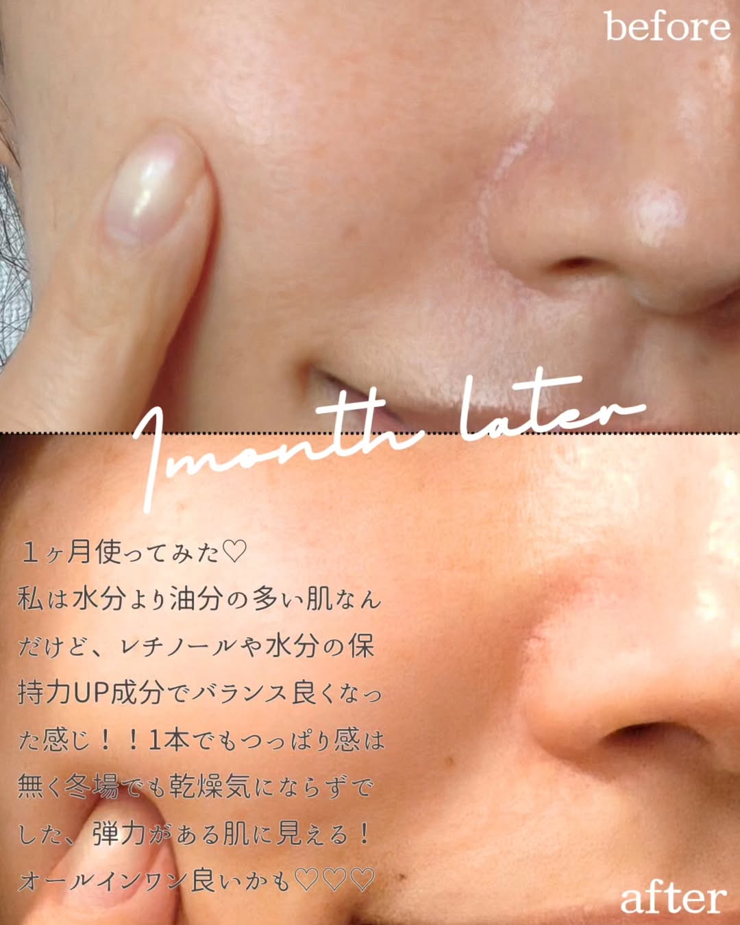 水分より油分多めで水分が増えるとバランスがとれてくるって、もうすぐコラーゲンも1ヶ月飲み終わるので