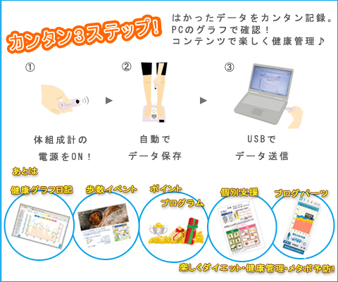 体組成計や歩数計などの健康機器メーカータニタが運営する健康応援サイト。体重・体脂肪などのレコーディングがカンタンにできるグラフの他にも歩数イベントやポイントプログラムなどでカンタン楽しくダイエット、メタボ予防、健康管理にお役立ちです♪