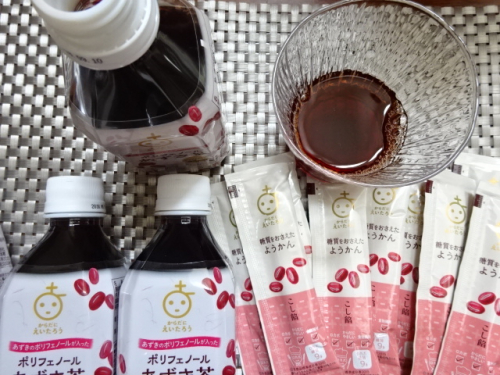 「糖質をおさえたようかん」10本と「ポリフェノールあずき茶」4本(*^^*) |