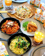 2020.4.14 火曜日 〜 〜 〜 次男坊とおうちランチ🍴 #stayhome ・ *ナポリタン *桜エビと小松菜のペペロンチーノ *ネギと鶏肉の照り焼きピザ *スパイシーチーズチキンスティック (シャカシャカチキン風) ・ ・ ・ パスタは ナポリタン、カルボナーラ、ペペロンチーノ しか食べたがらない次男坊( °×° ) カルボナーラは私が苦手めなので 残された2つのパスタと 次男坊の大好きなクリスピータイプの照り焼きピザ🍕 そして(あのお店の)シャカシャカチキンに 味を似せてみたスティックチキン🙌 パスタだけだと 工エエェェ(´д`)ェェエエ工 って言うからね〜〜 ・ ・ ・ お供に飲んだのは 和歌山ノーキョー食品工業さまにいただいた 【JOINみかんジュース】🍊🍊🍊 コレ、本当に美味しいんです🎶 我が家は何度も飲ませていただいているのですが、 濃縮タイプではなくストレート果汁なので 酸味と甘味のバランスが良く みかんの旨味がギュギュッ✨と凝縮 ゴクゴク飲んでしまう美味しさ🎶 ・ ・ 届いてからというもの 旦那氏も次男坊も 《早く飲ませて〜早く飲ませて〜〜》 そればっかり、すっかり虜です😅 これからの季節は更に美味しいね〜(/o^∀^o)/ ・ 楽天市場でもお取り扱いがあるので 自宅用だけでなく 贈答用にもオススメです👍 ・ ・ ・ #おうちランチ #パスタ #今日のお昼ご飯 #ふたりランチ #パスタランチ #おうちごはん #おうちごはんlover #今日のご飯 #パスタ大好き #フーディーテーブル #JOINみかん #100パーセントジュース #みかんジュース #karin_fan #和歌山ノーキョー食品工業 #おすすめジュース #スキレット料理 #monipla #パスタピザランチ #pastalover #ふたりごはん #おうち時間 #stayhome 2020/04/14