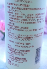 ■成分:水、グリセリン、エタノール、PG、グルタミン酸Na、PCA-Na、クエン酸Na、安息香酸Na、エチルパラベン、プロピルパラベン、ブチルパラベン