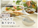 トングの先端の溝に串を入れたら押すだけ。すっと食材を抜くことができます。