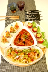 今日はお盆休み前のスペインパーティ!!親友Kちゃんとおうちで夏休みの遊び計画(^^ゞKディップの回転プレート今回は簡単なスペイン料理バーションでおもてなしメニューは炊飯器で簡単本格シーフードパエリア柔らかチキンのトマト煮チリンドロンスペイン風オムレツトマトカップのポテトサラダいつ… 2010/08/16
