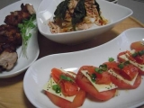 ターンテーブルにのせたお皿に、いつものお料理をちょっとおしゃれに盛り付けて。