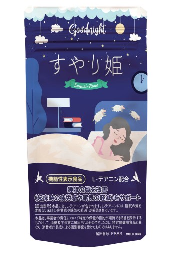 「すやり姫」は睡眠の質を改善(起床時の疲労感や眠気を軽減する)機能が報告されている機能性表示食品です。しっかりと文献調査を行い、安全性や有効性が消費者庁から認められている商品です。