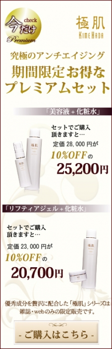 『全商品ノーベル賞受賞成分配合。シワ対策用高級基礎化粧品「極肌」』
