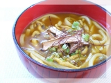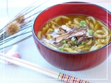 もちもち食感のきねうちのうどんに2種類の鰹節から出し汁をとり、さらに鰹だし顆粒を加えた