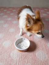 (⌒∇⌒)ノフリフリ この日もモニター品だけをご褒美おやつみたいにあげてみました わかりやすくするように商品のアルミパックを横に置いて、1粒をさくらの右前足の上に乗せてみました 015JPG マテ! 016JPG Σd(≧▽≦)OK!! 017JPG 今度はあずに商品パ… 2016/10/13