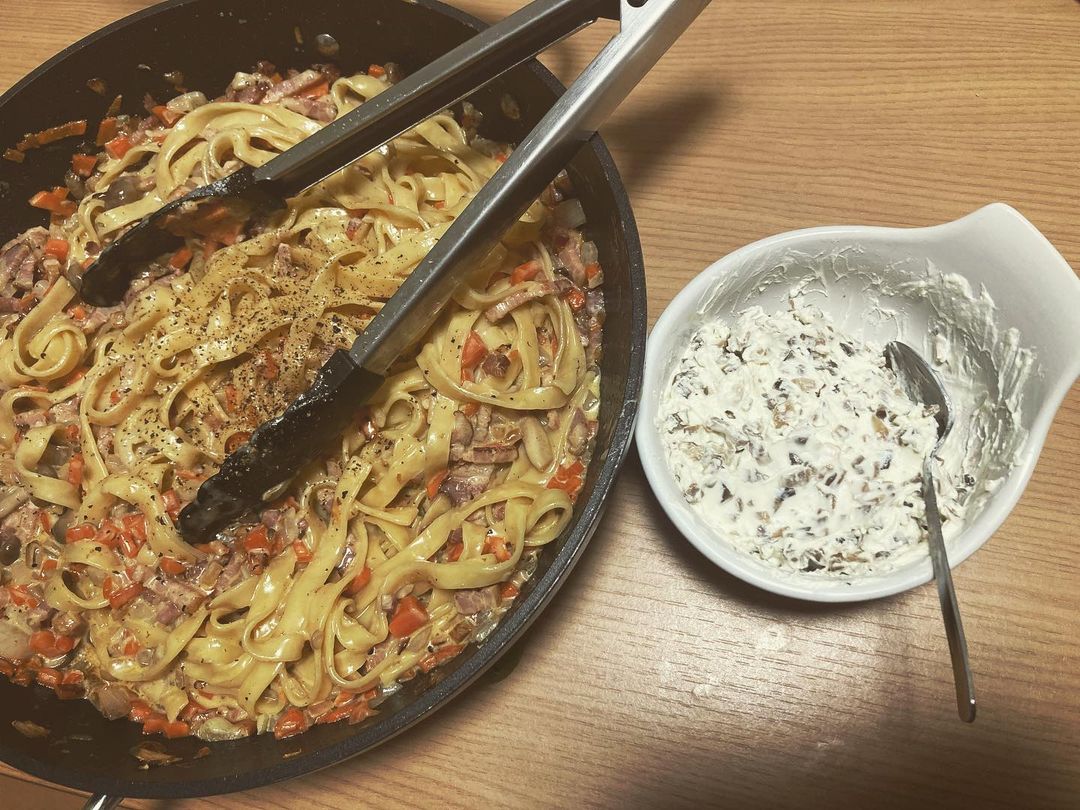いぶりがっこ、頂きました〜🎁笑 秋田県の特産品のいぶりがっこ。 今回頂いたのは紀乃家さんのもの!好きな大きさに切って食べれる棒タイプとアレンジしやすい細切れのタイプで頂きました。 めちゃくちゃカンタン、いぶりがっこのクリームチーズ和え💓 居酒屋とか出会えるやつですが、パンに乗せたりそのまま食べたり、私達はパスタのクリーム系添え物として使いました✨ いぶりがっこってあんまり普段食べる事ないけど、たくあんを燻した物ってイメージでした。 燻すだけでかなり違うんやね… めちゃくちゃスモークの香りが良い🥹💕 #いぶりがっこ #秋田 #伝統食品 #たくあん #漬物 #monipla #kinoya_fan