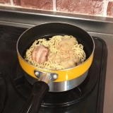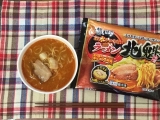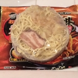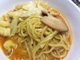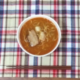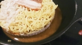 具材は直火で焼き上げたチャーシュー、香ばしく炒めた野菜を盛り付けています。麺は小麦の風味が味わえる中太麺です。