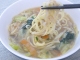 スープ、麺、具材が一つになったタンメン。1/2日分の国産野菜が摂取できます。お鍋に入れて温めるだけでお召し上がりいただけます。