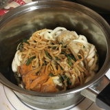 スープ、麺、具材が一つになったチゲうどん。お鍋に入れて温めるだけでお召し上がりいただけます。