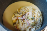 <スープ>鶏ガラと豚骨をブレンドした濃厚白湯スープに、野菜の旨味が溶け込みます。