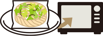 完成した商品を温め直すのではなく、お召し上がり直前に電子レンジで加熱調理し、仕上げる料理です。