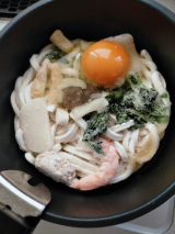 ・出産間近になると、キッチンに立つのも大変で、、、そんな時にお鍋で温めるだけの鍋焼うどんで主人の食事の用意が出来ました。