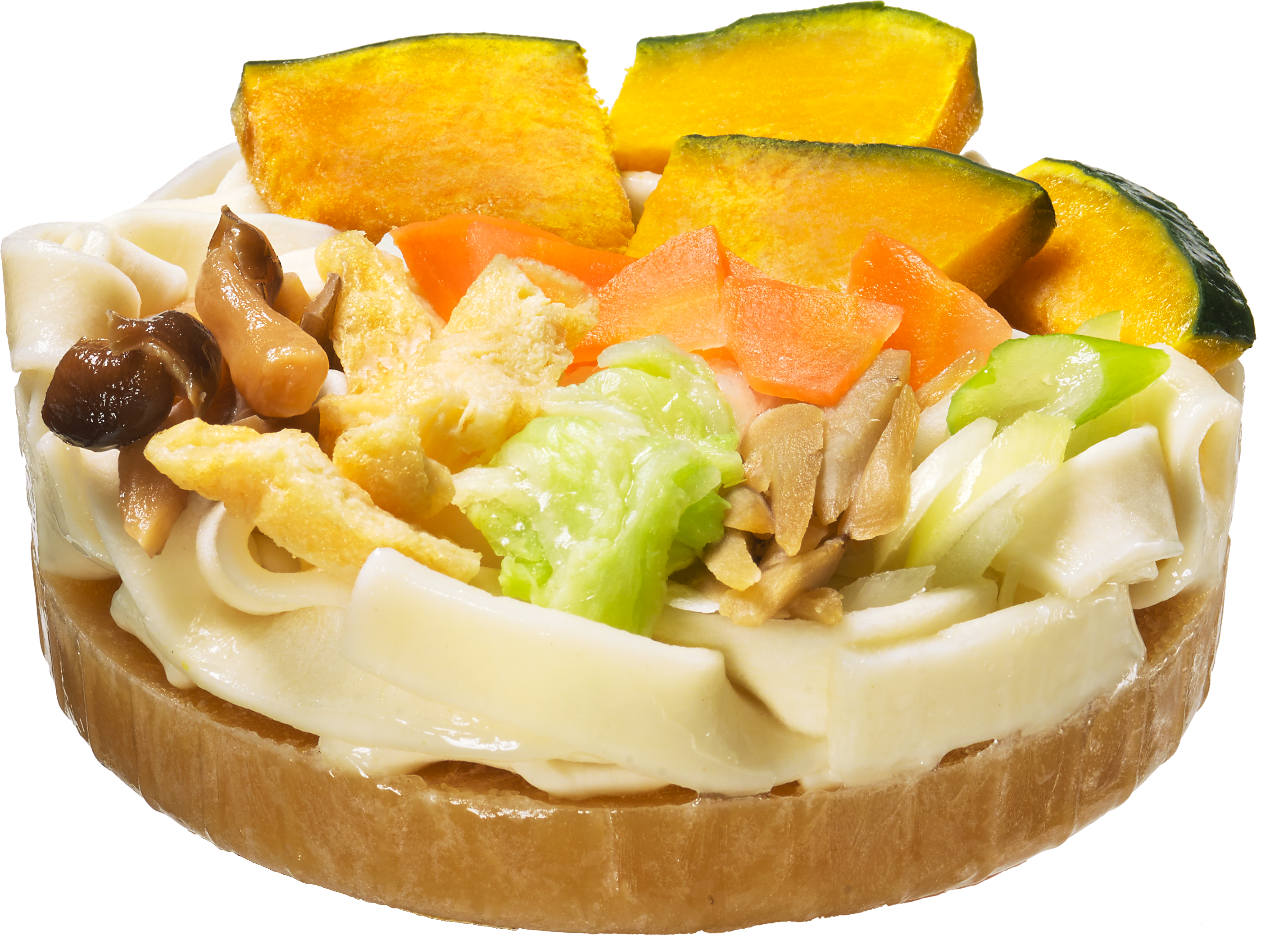 <具材>7種の具材入り/かぼちゃ、白菜、ごぼう、ねぎ、人参、ぶなしめじ、きざみ揚げ