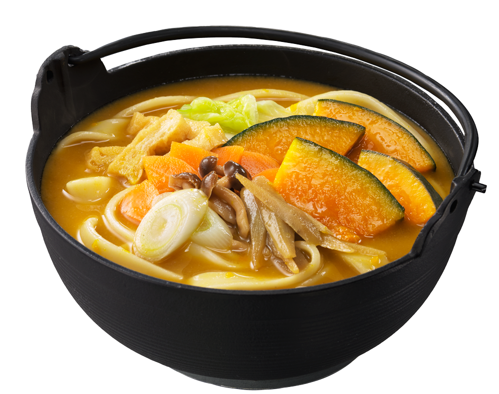 <つゆ>煮込むほどにとろけるかぼちゃと、野菜の旨味や甘みが溶け込んだ味噌仕立てのつゆです。