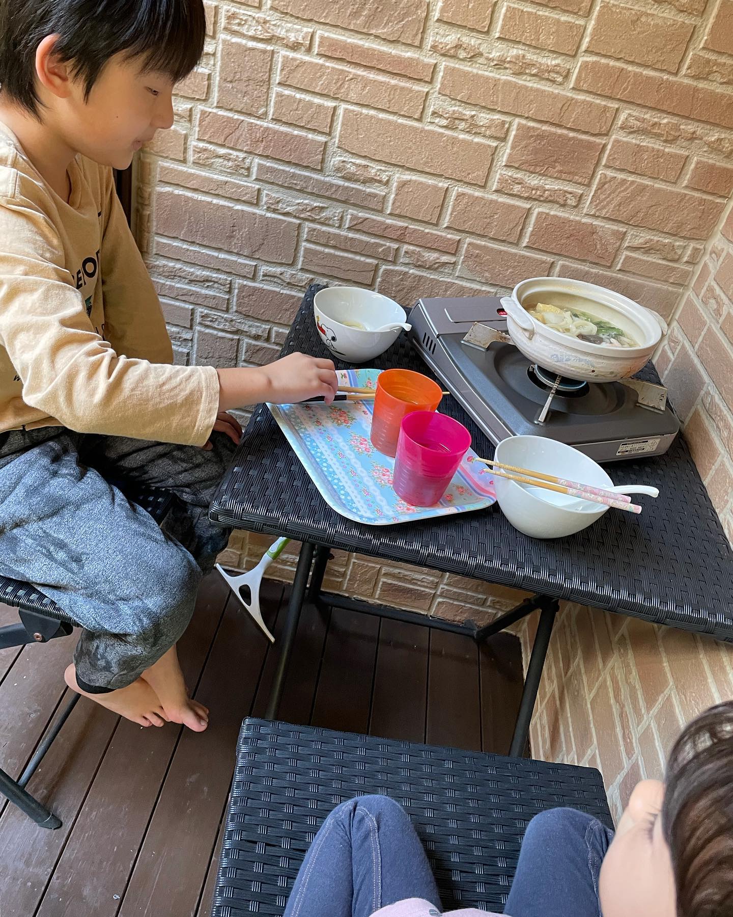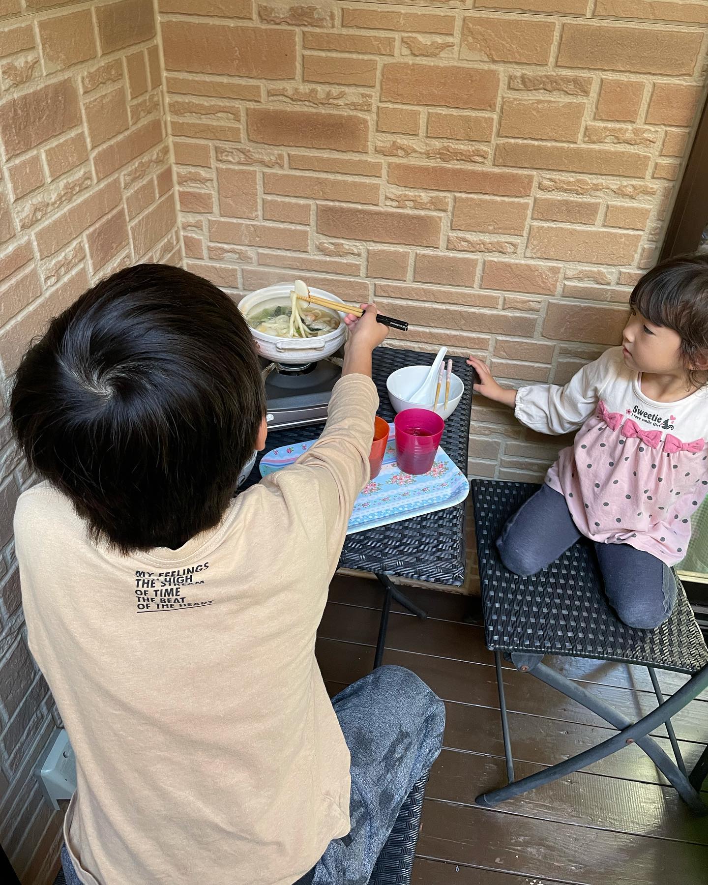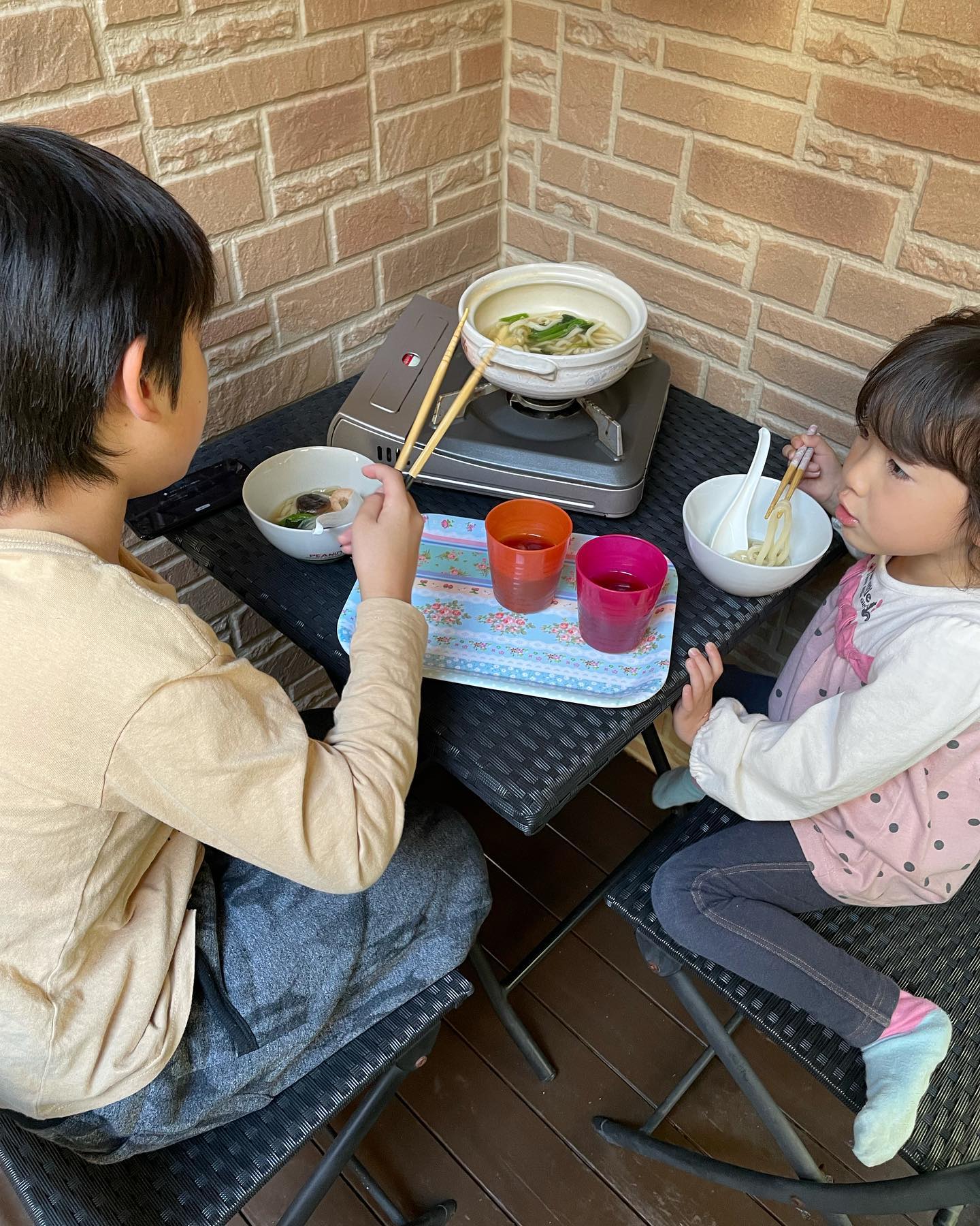 お水がいらない 鍋焼うどん❤️ だし、麺、具が一つになった鍋焼うどん✨ お鍋に入れて温めるだけでお召し上がりいただけます✨ <だし>そうだかつお節、さば節、いわし節、真昆布、椎茸から丁寧にとった関西の黄金だし。追い鰹で風味豊かに仕上げました✨ <具材>8種の具材入り/えび、つくね、椎茸、ほうれん草、白菜、きざみ揚げ、焼かまぼこ、麩 <麺>国産小麦を使用 具沢山のうどんが手軽に食べれる💖 中庭でご飯✨ お外でご飯は新鮮で娘がすごく喜んでた☺️ 雰囲気違うともりもり食べるね(笑) キンレイさんのは簡単だから外で食べるのも楽です✨ 肌寒くなった日に温かいうどんが美味しい💖 余ったつゆで雑炊作っちゃった😆✨ #PR #株式会社キンレイ #キンレイのある食卓 #火にかけたら料理でしょ #キンレイ #なべやき屋キンレイ #笑顔の食卓を #鍋焼うどん #キャンプ飯 #monipla #kinrei_fan
