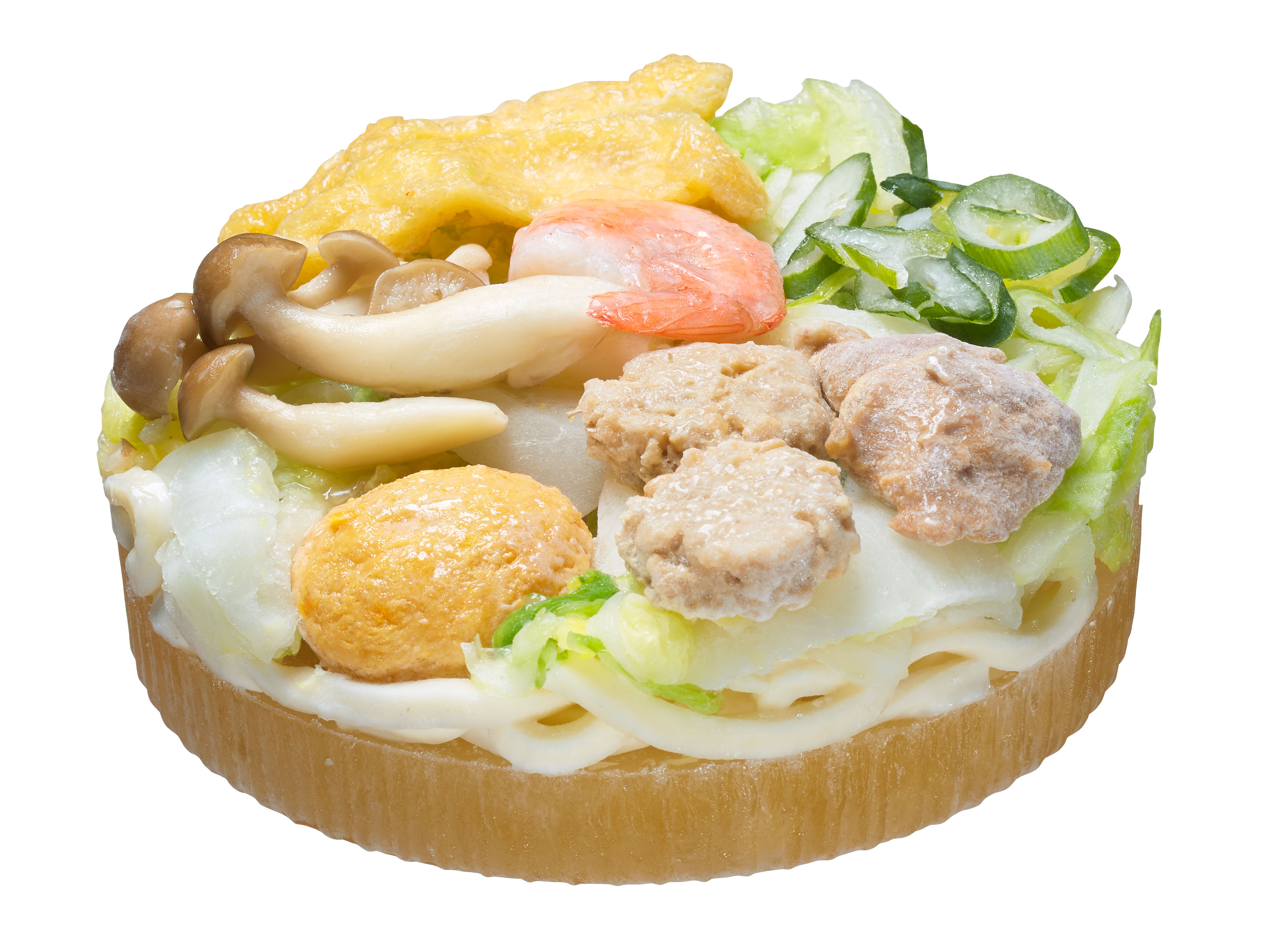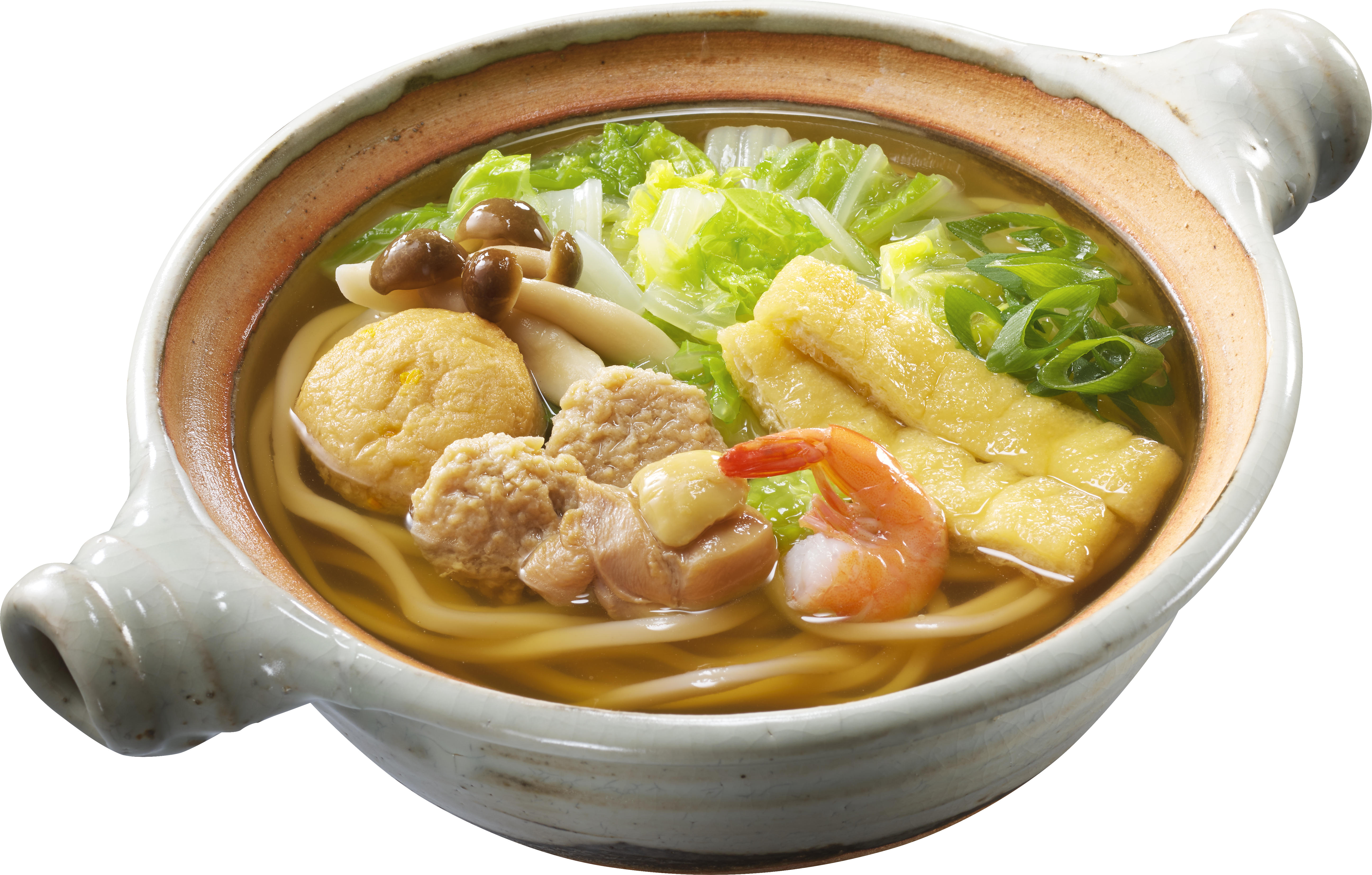 〈麺〉寄せ鍋の『シメ』をイメージした、もちもちとした食感のうどんに仕上げました。国産小麦使用。