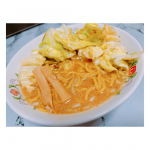<具材>鉄鍋で炒めた肉野菜(豚ミンチ・玉ねぎ・もやし)と白ねぎ、メンマを盛り付けました。