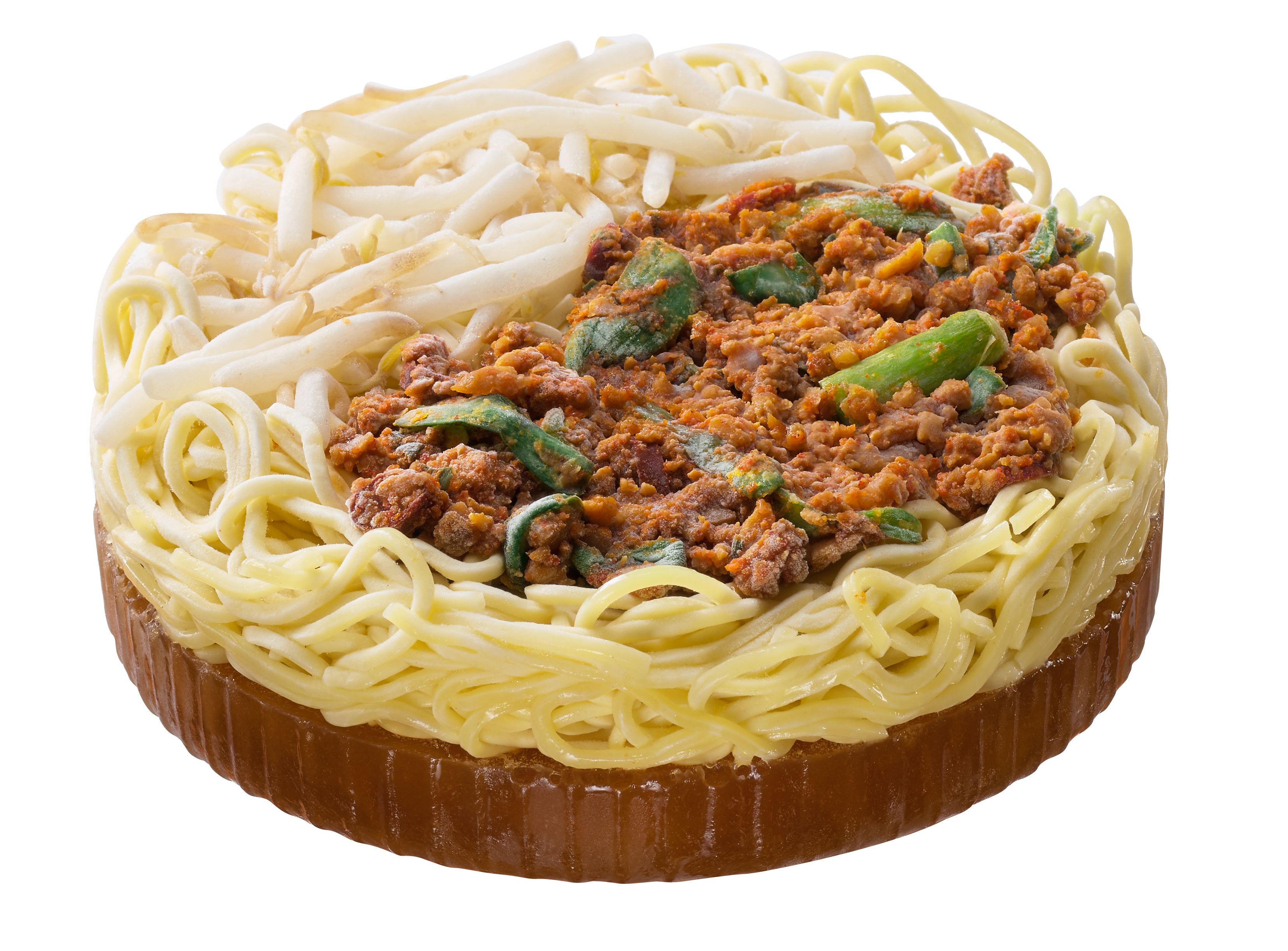 <具材>旨辛ミンチは、鉄鍋でニンニクと唐辛子と共に香ばしく挽肉を炒め、旨味を引き出しました。さらに、ニラ、もやしを盛り付けました。