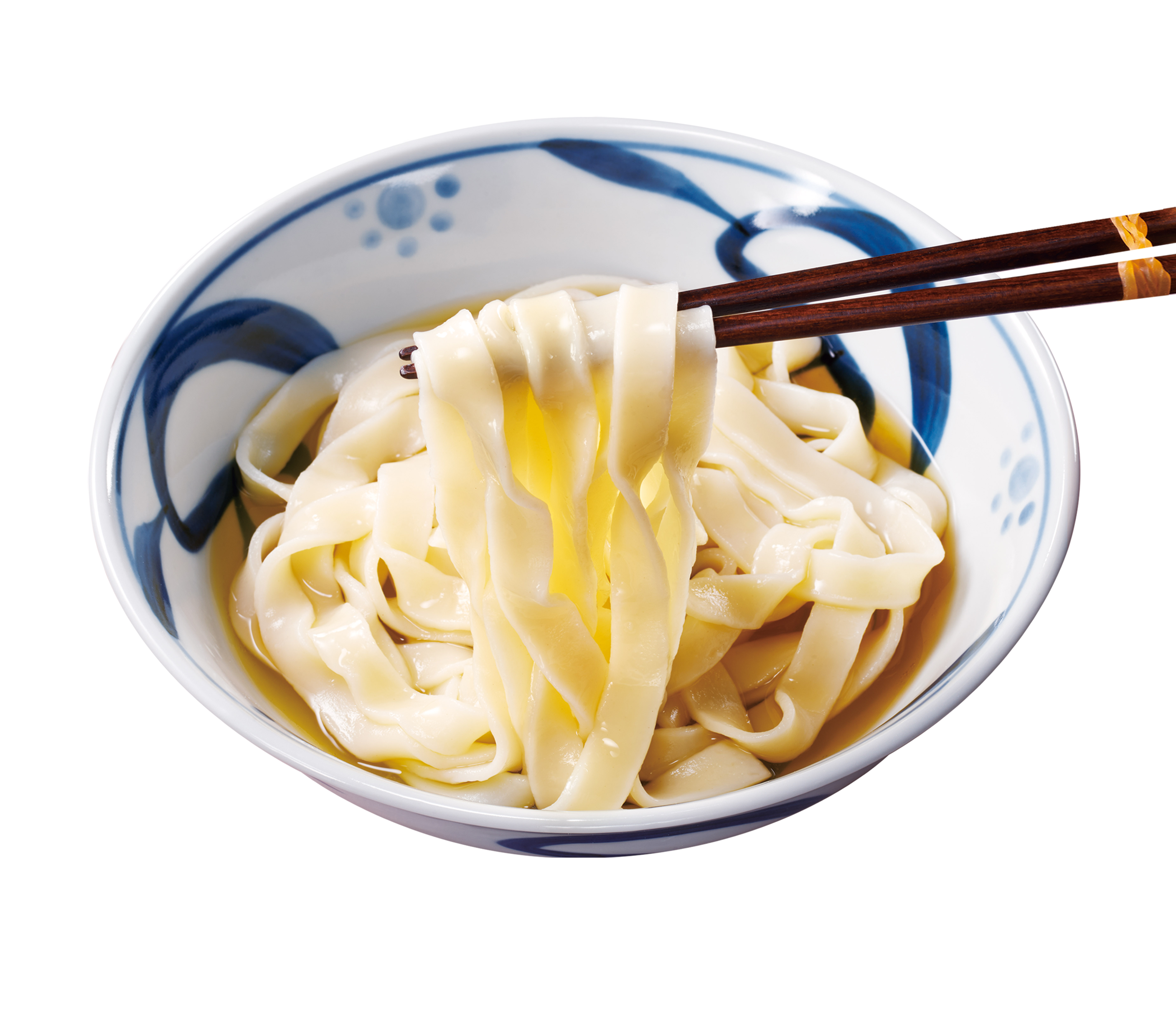 <麺>小麦全粒粉をブレンドした国産小麦100%の風味豊かな太麺。弾力とコシのある麺に仕上げました。
