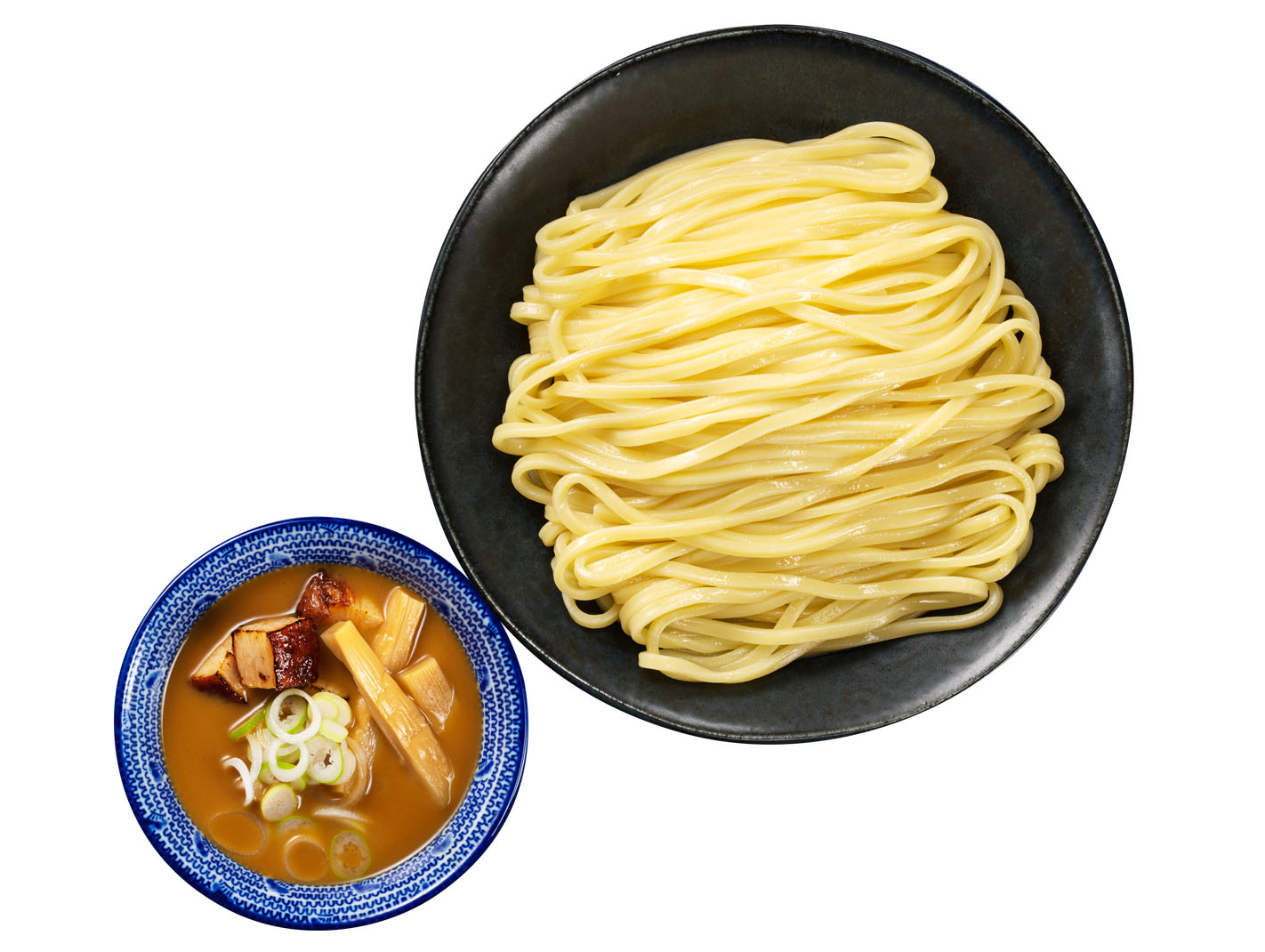 スープ、麺がセットになった豚骨魚介つけ麺。電子レンジに加え、お鍋でも調理いただけます。