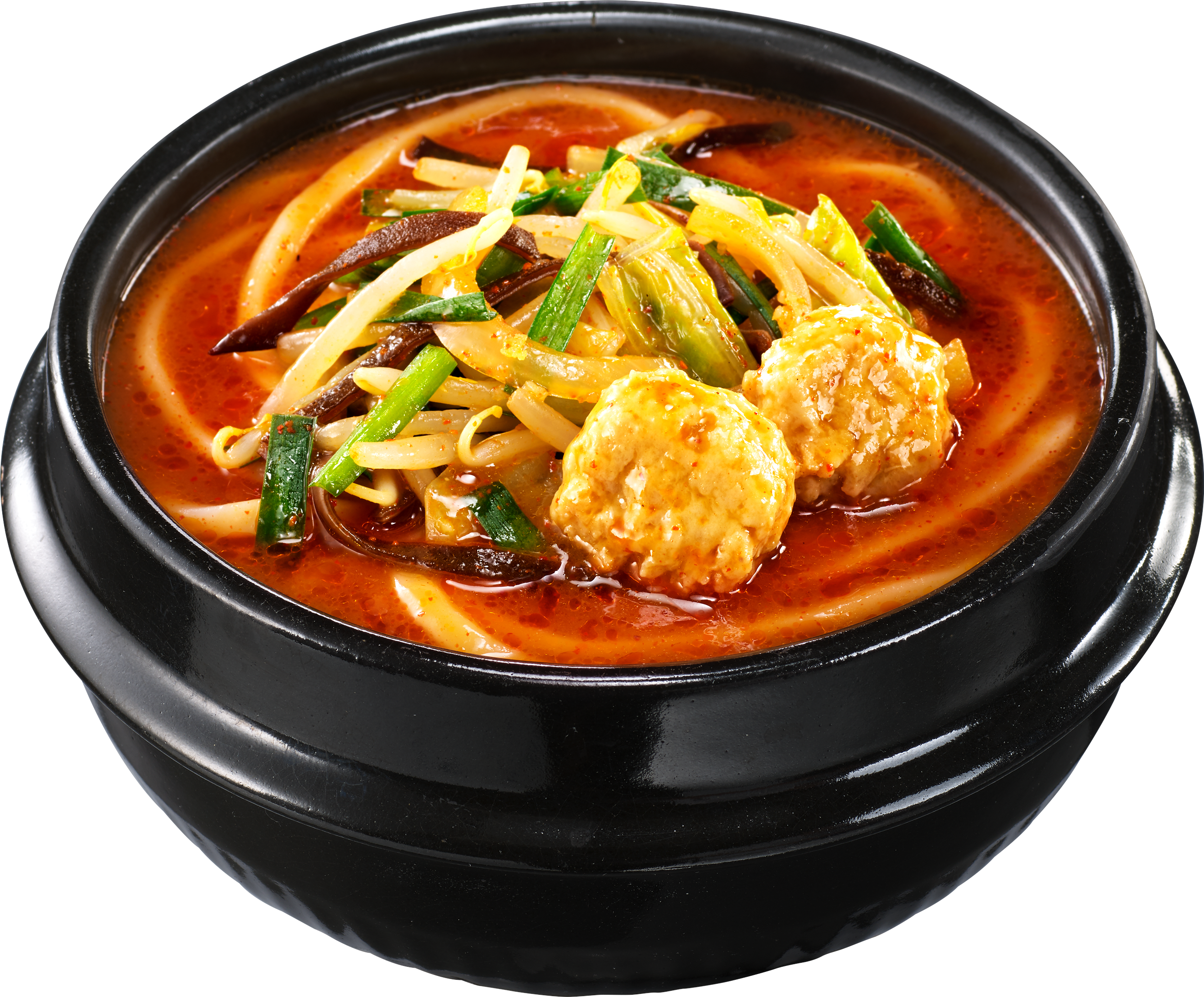 スープ、麺、具が一つになったチゲうどん。お鍋に入れて温めるだけでお召し上がりいただけます。