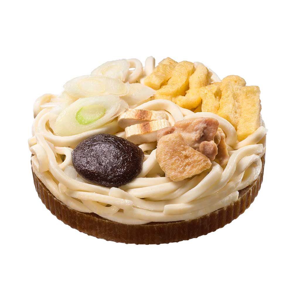 <具材>白ねぎ、鶏肉、椎茸、きざみ揚げ、麩