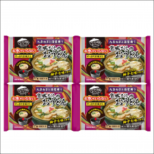 「お水がいらない 京風だしのおうどん」は、ストレートのおだし、麺、具材が三層構造になって凍っているので、そのままお鍋で温めるだけ!お水で希釈する必要がありません。
