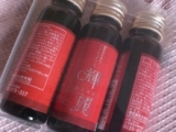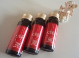 原材料:フィッシュコラーゲンペプチド、ガラクトオリゴ糖、白鶴霊芝、グレープフルーツ果汁、キチン分解物、ライチ果汁、コラーゲントリペプチド、サメ軟骨抽出物(コンドロイチン含有)、ハチミツ、オルニチン、クマザサエキス、昆布エキス、米胚芽抽出物(セラミド含有)、ツバメの巣(酵素処理)、アスタキサンチン、GABA(γ-アミノ酪酸)、トレハロース、ビタミンC、酸味料(クエン酸)、テアニン、香料、甘味料(スクラロース)原料の一部にエビ、カニ、ゼラチンを含む