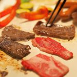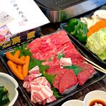 赤身と霜降り、焼肉2種盛り合わせ。